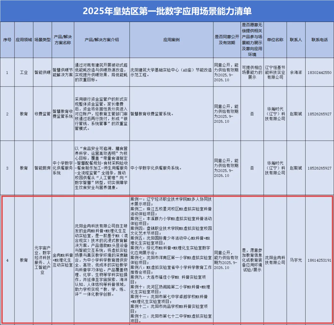 “金冉MR科普+MR理化生互动实验室”成功入选《2025年皇姑区第一批数字应用场景能力清单》